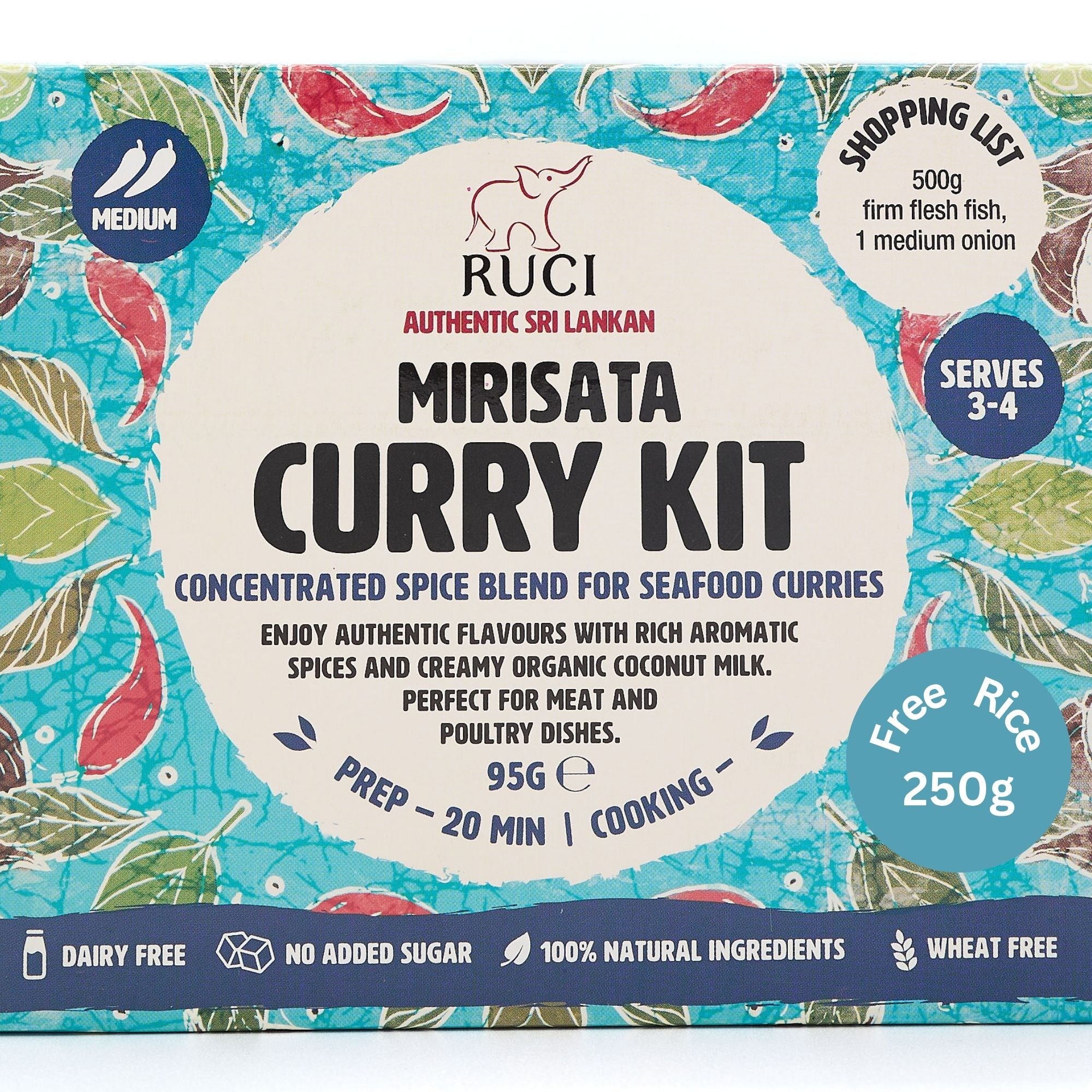 Mirisata (මිරිසට) means 'chilli curry' in Sinhala, a classic dish known for its bold heat and deep flavour. Perfect for fish or seafood, this kit brings the signature spice of Sri Lankan coastal cuisine straight to your kitchen.